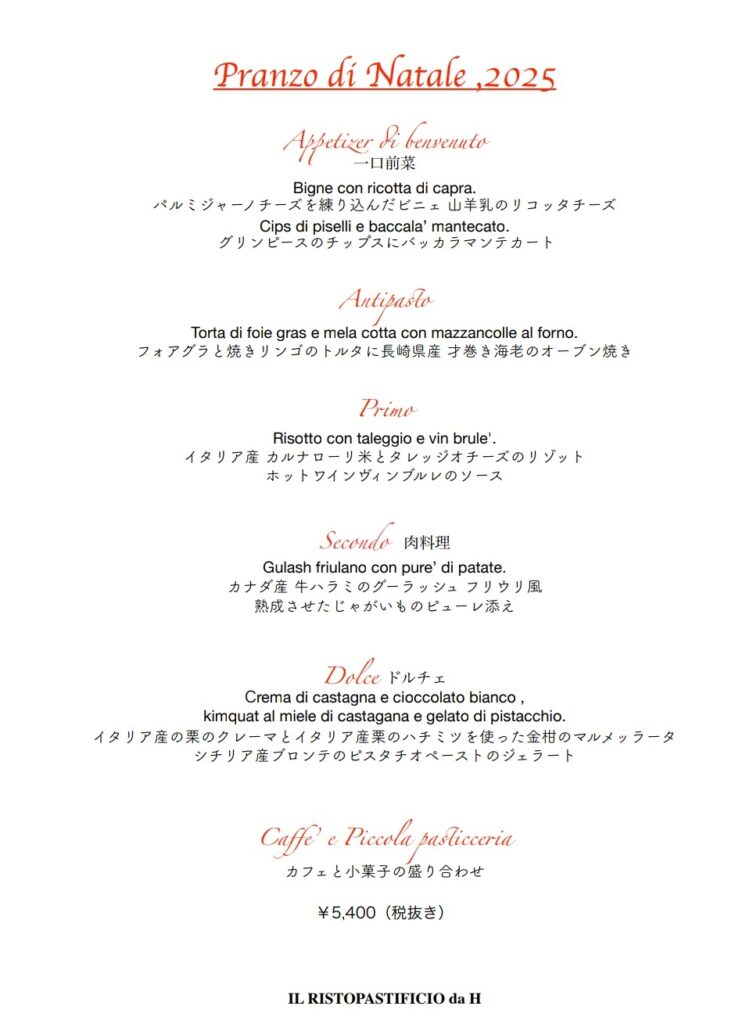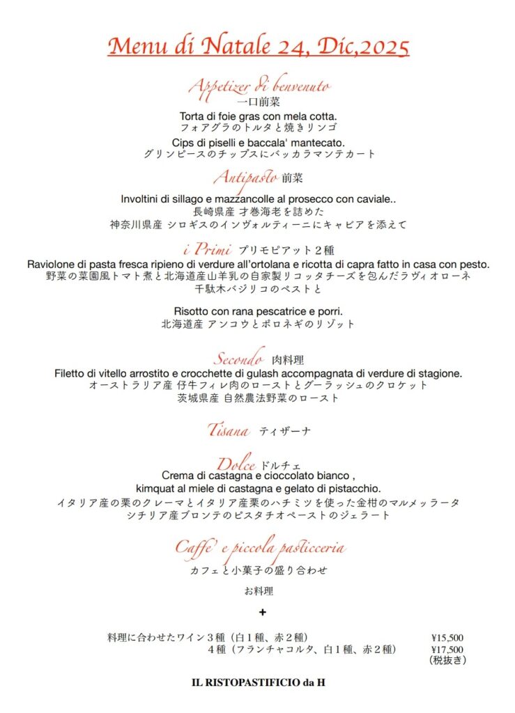 12/20(土)~12/25(木) は、クリスマス特別コース(要予約)のみのご提供となります。ご予約はお電話にて承ります。